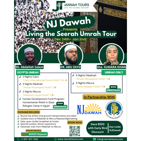 Embark on a spiritually enriching Umrah journey this December with Jannah Tours. Experience the serenity of Madinah and the sacred rituals of Mecca, guided by experienced Imams. Enjoy premium accommodations, group support, and meaningful moments of worship in the holy cities.